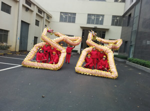 As time gone by, the horse year has slipped away, and the year of goat is in the coming unconsciously. Like previous years, our company has prepared a lot of firecrackers, and the dragon dance team also have been ready. At 8:18, with a loud sound of firecrackers, the dragon team danced into the company's door in the sound of gongs and drums.